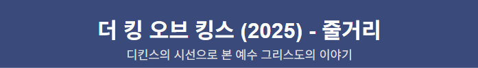 2025년 애니메이션 영화 '더 킹 오브 킹스'는 찰스 디킨스의 시선을 통해 예수 그리스도의 생애를 독특하게 재해석함으로써 평론가와 관객들로부터 다양한 반응을 이끌어냈습니다.