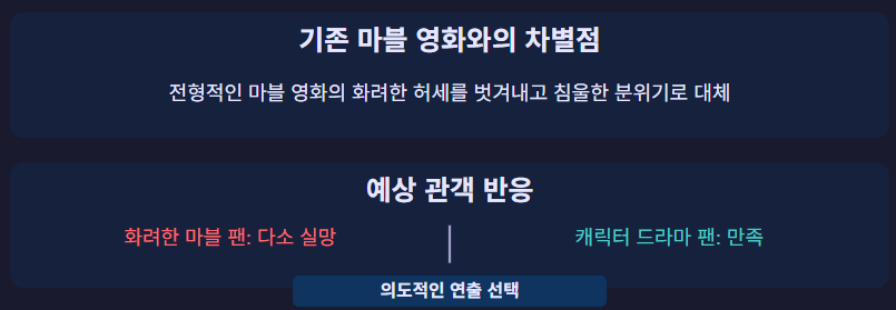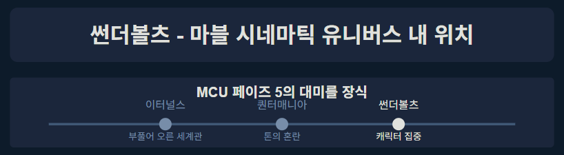 제이크 슈라이어 감독의 '썬더볼츠'는 기존 마블 영화와는 다른 길을 걷는 작품입니다. 화려한 스펙터클보다는 침울한 내면의 성찰에 중점을 둔 이 영화는 MCU 페이즈 5의 끝을 장식하며, 마블 시네마틱 유니버스를 감정적으로 복잡하고 도덕적으로 모호한 방향으로 전환시키고 있습니다.